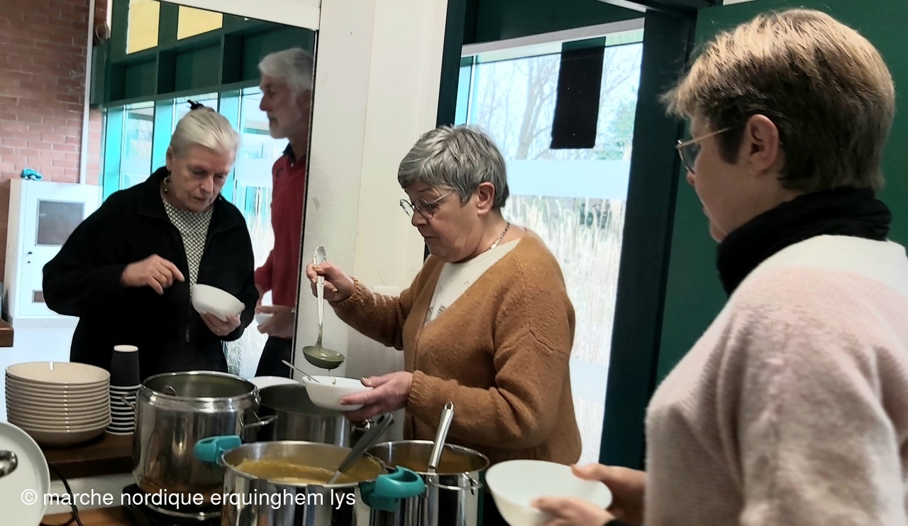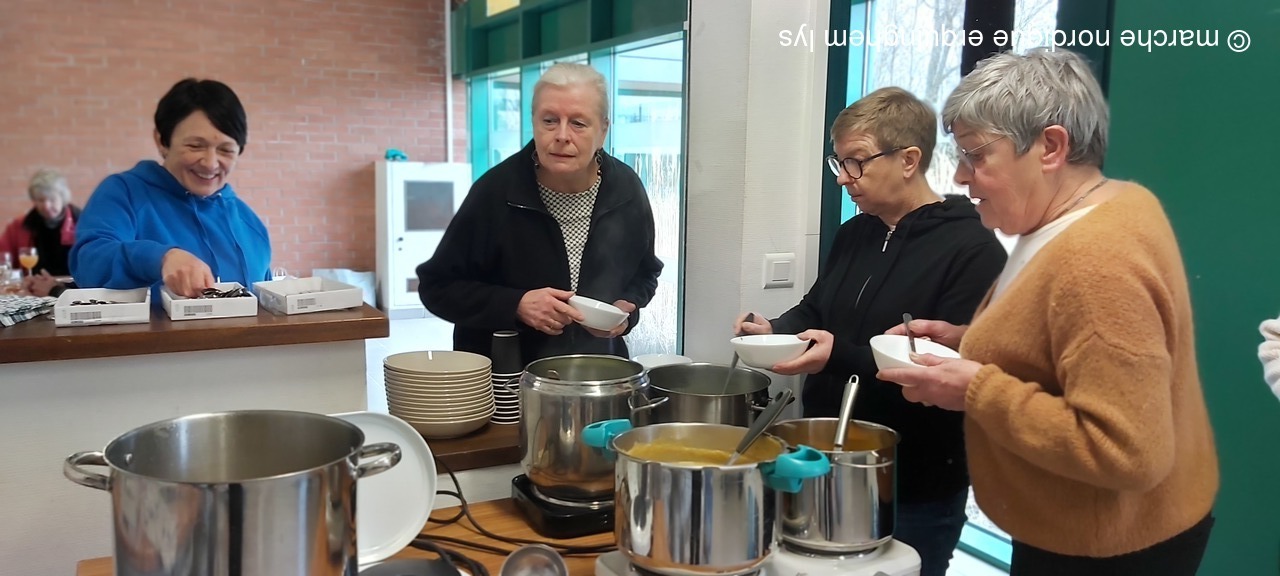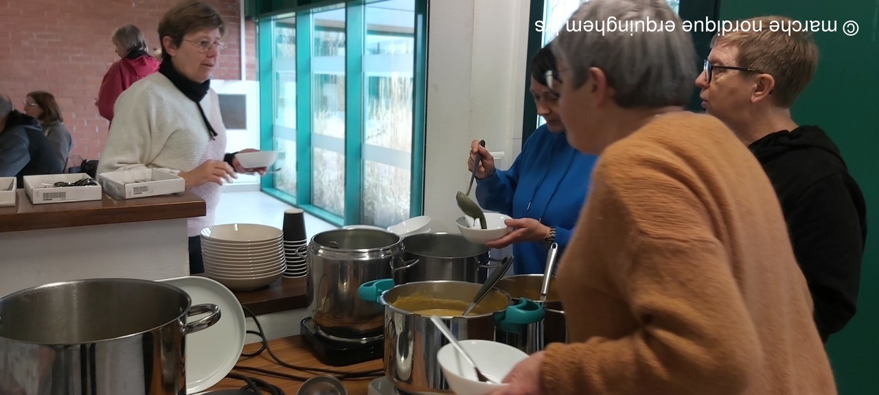 Cette marche a été suivie d'une auberge espagnole sous forme de repas soupe.Nous avons pu déguster différentes soupes: aux orties, au cresson, au potiron, au potimarron et à l'oignon, accompagnées de délicieux fromages