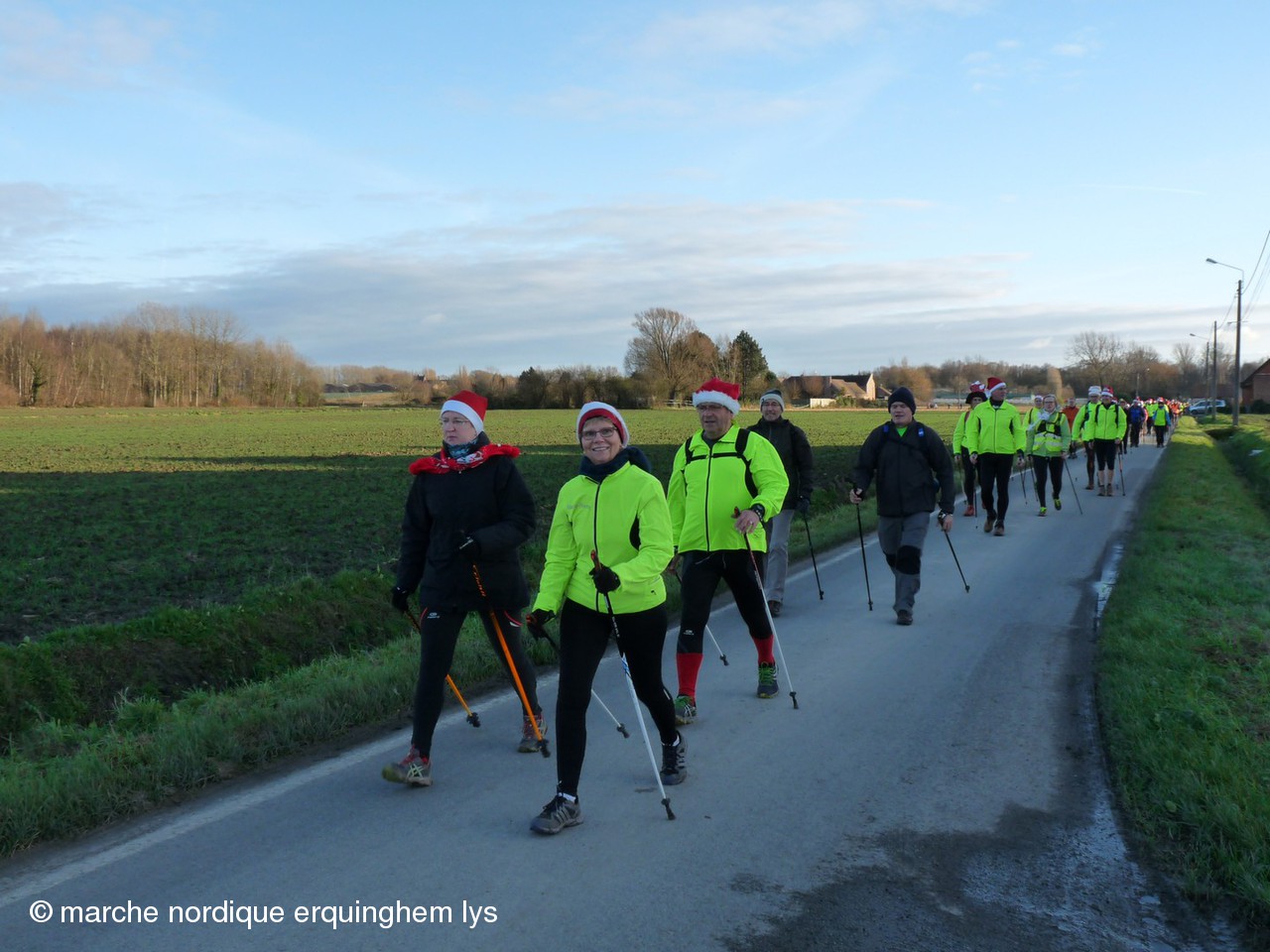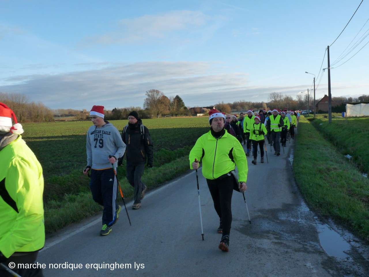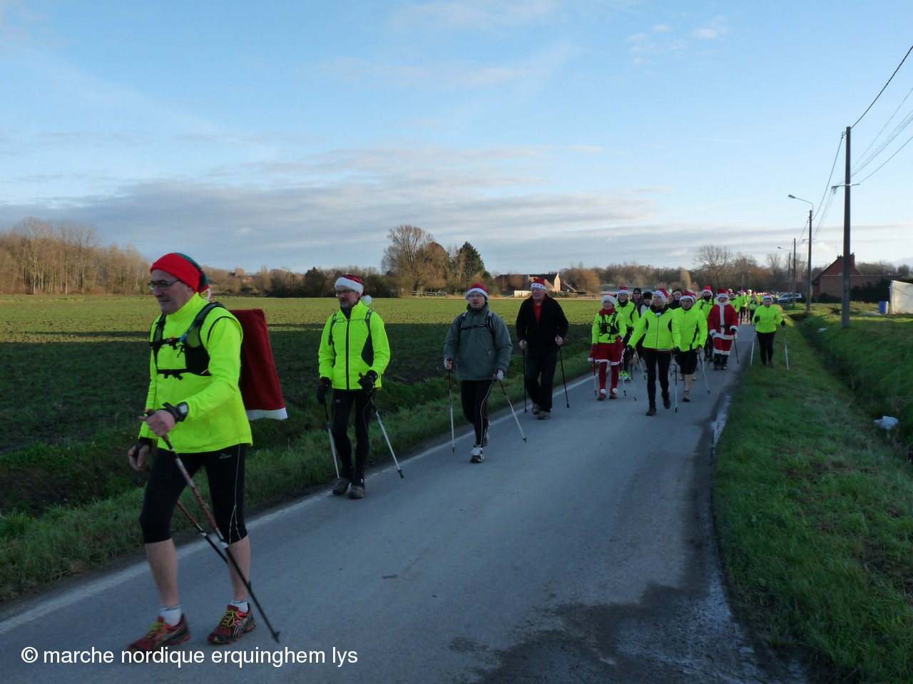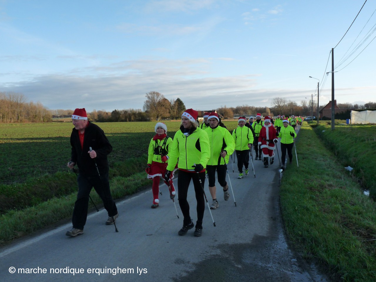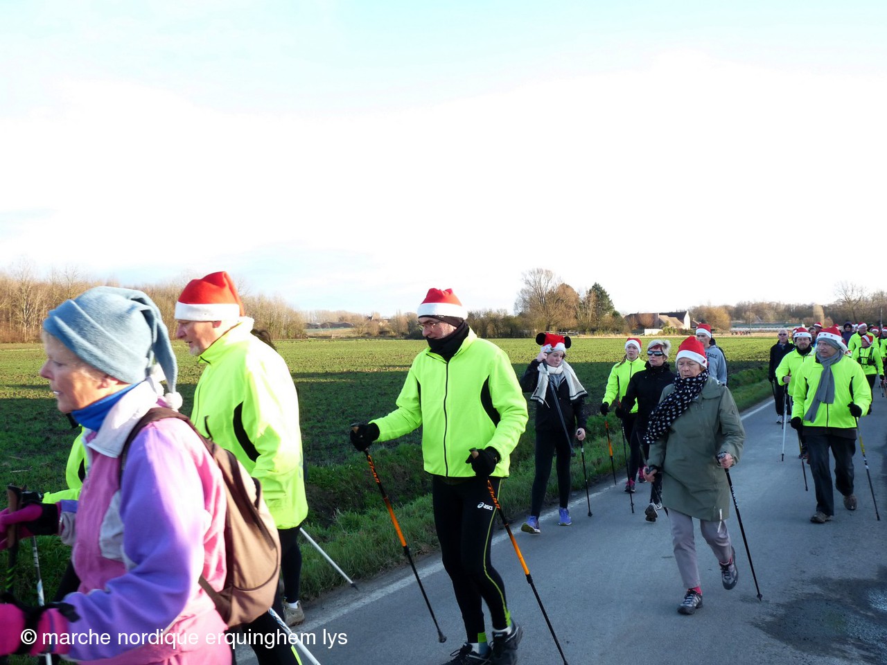 La Rando du Père Noël, orgaisée par du club de Wambrechies en partenariat avec l’Office de Tourisme du Val de Deûle, a encore connu un gros succès ce samedi au départ de la base de loisirs de Pérenchies- Verlinghem. Après les 170 participants en 2012, les 337 en 2013, cette fois, nous étions 420 à savourer le parcours préparé par Jean-Gabriel et son équipe dans une ambiance joyeuse et sportive. Dernière épreuve des « Rencontres de la marche nordique dans le Nord », ce rendez-vous a connu la plus grosse concentration de l’année des organisations FFA dans le Nord.