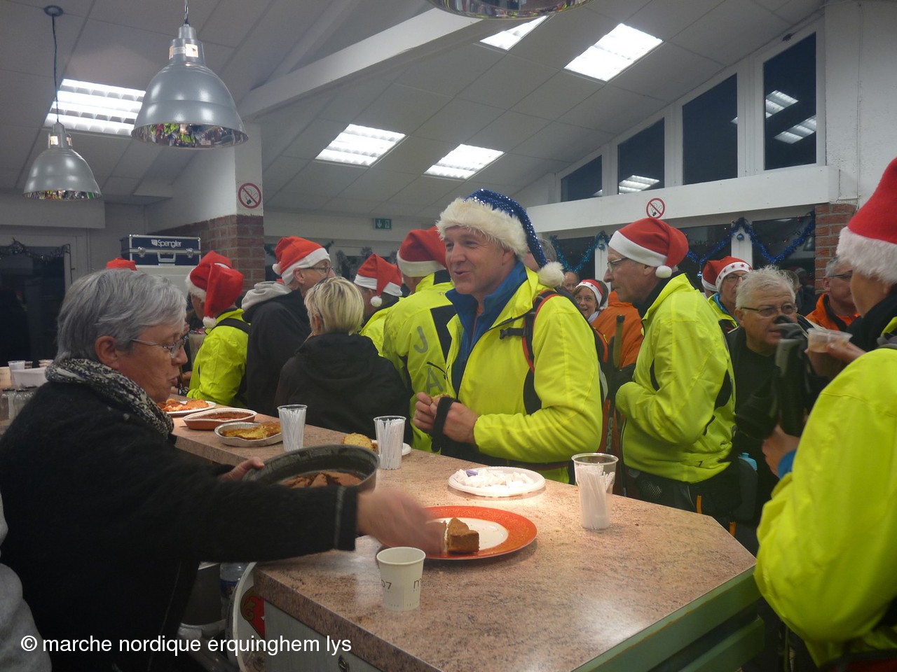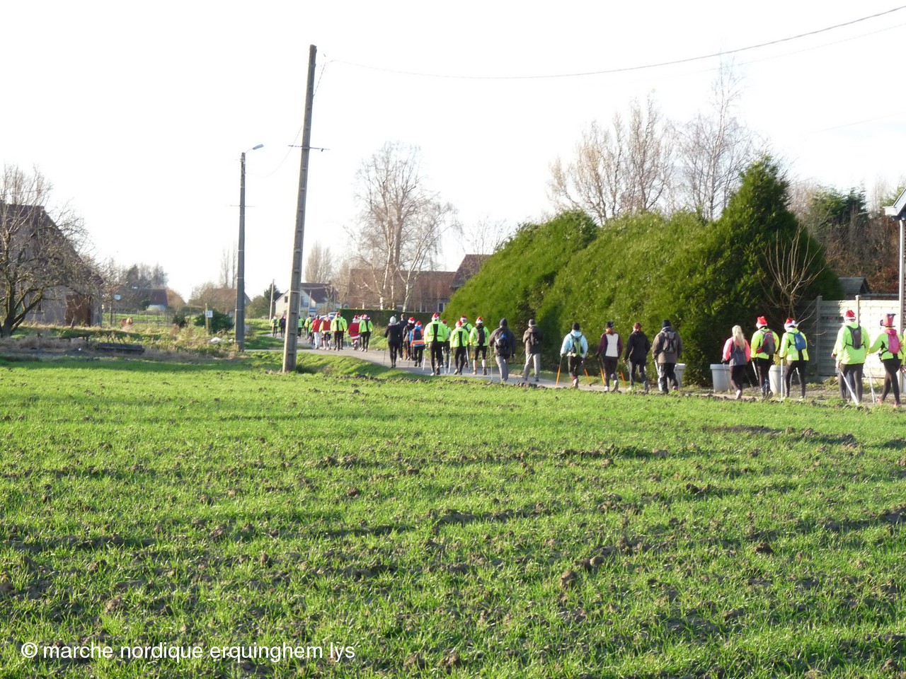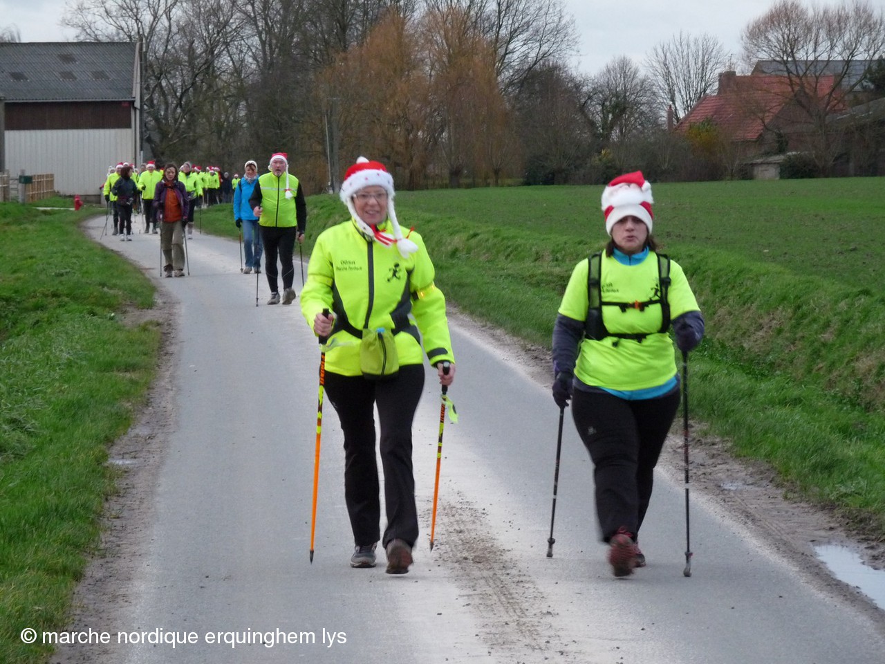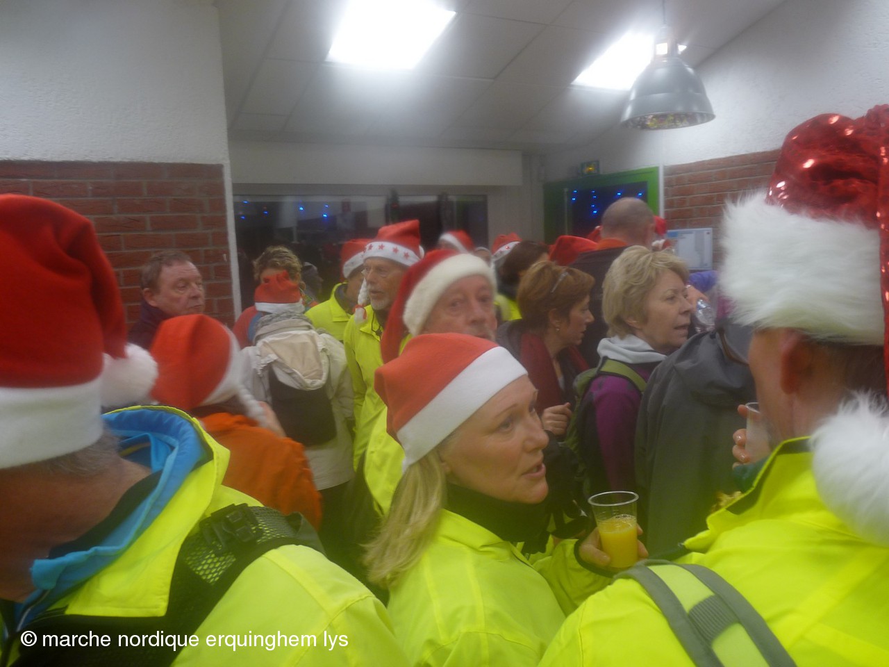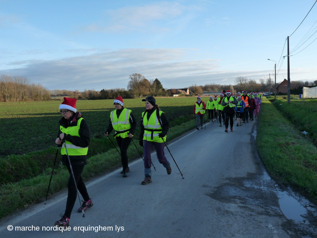 La Rando du Père Noël, orgaisée par du club de Wambrechies en partenariat avec l’Office de Tourisme du Val de Deûle, a encore connu un gros succès ce samedi au départ de la base de loisirs de Pérenchies- Verlinghem. Après les 170 participants en 2012, les 337 en 2013, cette fois, nous étions 420 à savourer le parcours préparé par Jean-Gabriel et son équipe dans une ambiance joyeuse et sportive. Dernière épreuve des « Rencontres de la marche nordique dans le Nord », ce rendez-vous a connu la plus grosse concentration de l’année des organisations FFA dans le Nord.