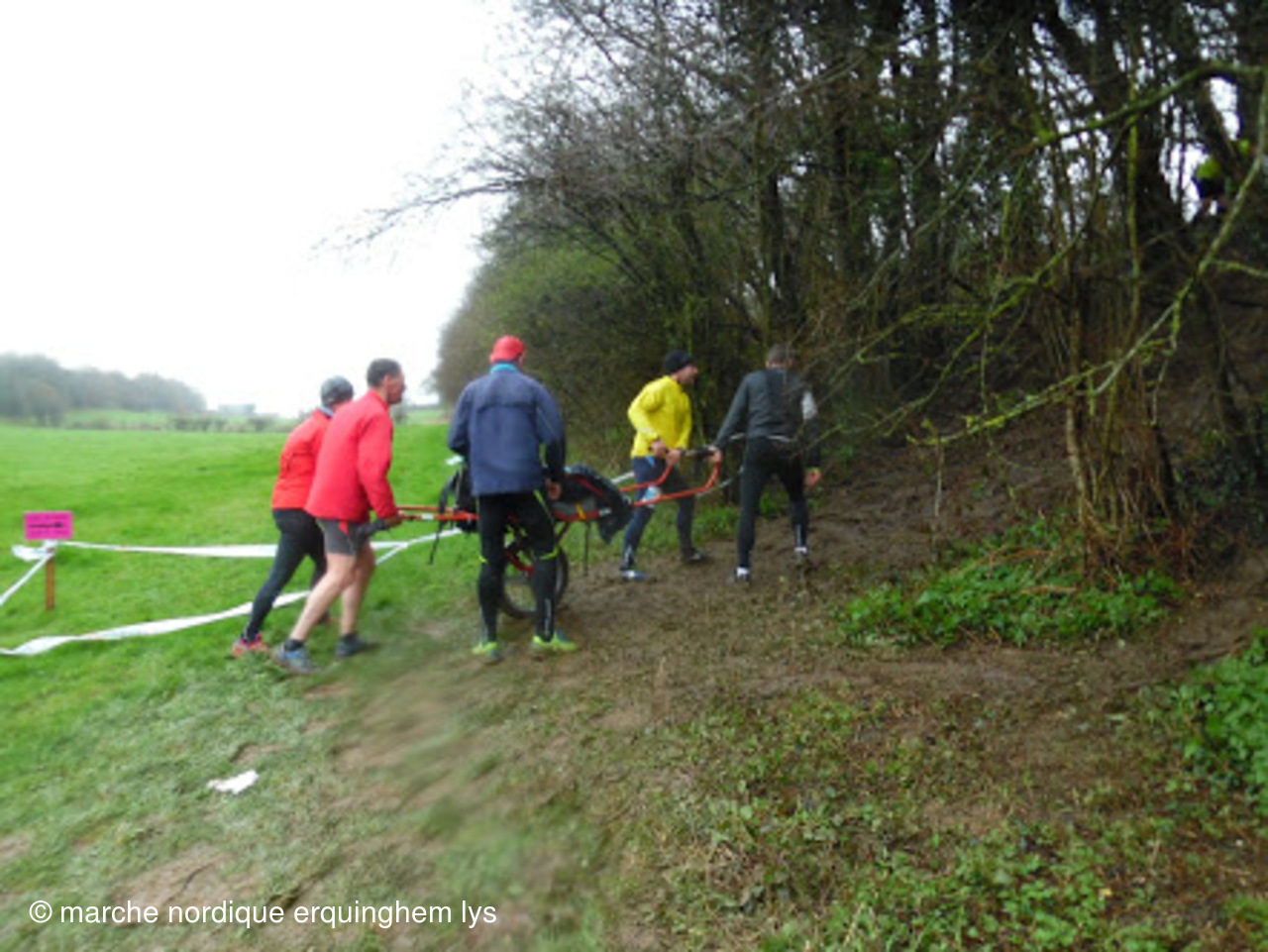 Nous étions une dizaine d'adhérents du club à braver les éléments : pluie, vent et boue du parcours de marche nordique du trail évasion de Seninghem. Il y en avait pour tout le monde: des montées:... de la boue, des descentes...de la boue, des glissades... dans la boue. une soupe à l'oignon à l'arrivée a récompensé tous les courageux!!