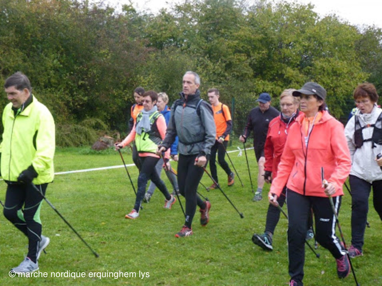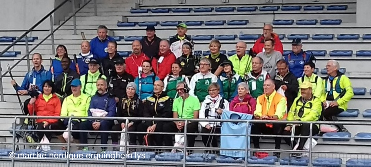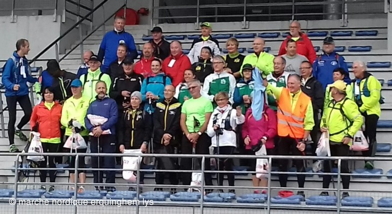 Nous avons découvert le parc urbain de Lomme, très bel espace vert et boisé avec quelques dénivelés donc un très agréable parcours de 9,3 km en 2 boucles organisé par le club de marche nordique de Lomme. Cette fois se sont les coachs qui ont été mis à l'honneur, en effet la FFA leur a remis un polo et une chasuble orange floqués "cadre tehnique marche nordique".