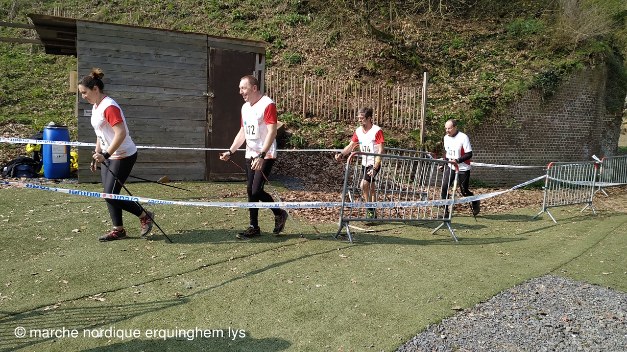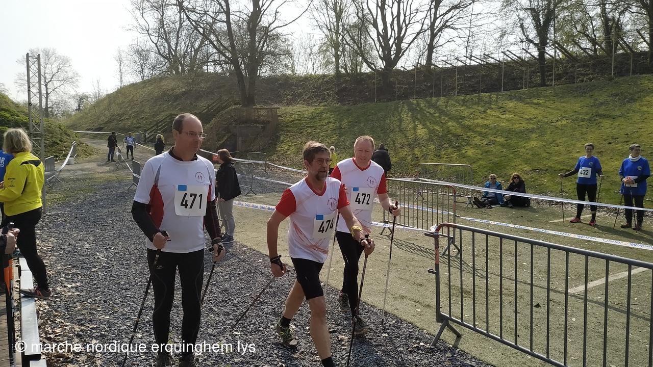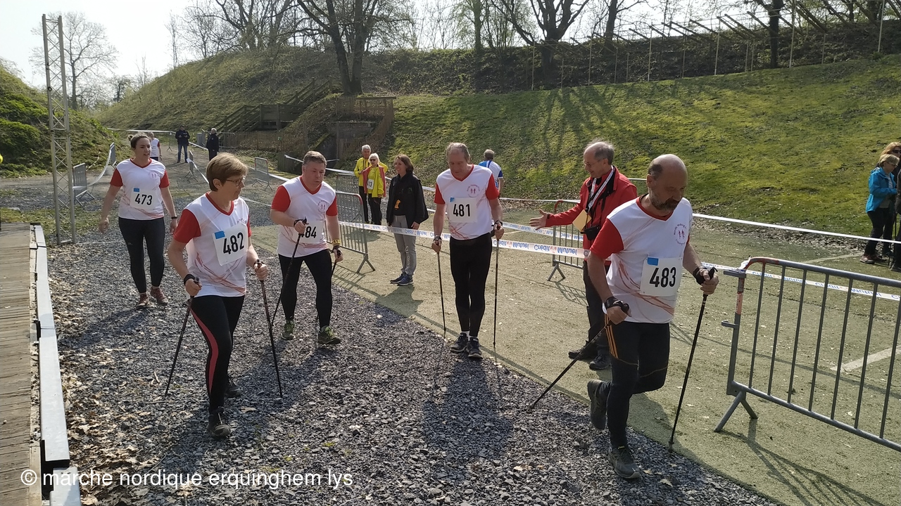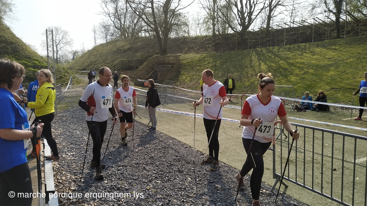 Première expérience d'une course relais en marche nordique par équipe au fort du Vert Galant à Wambrechies : 5 km en individuel pour 4 marcheurs puis 1.250 km par toute l'équipe pour terminer.Tous les participants ont apprécié tant l'ambiance que la course.