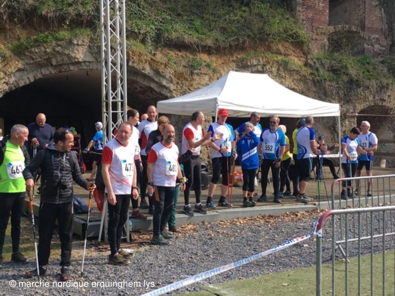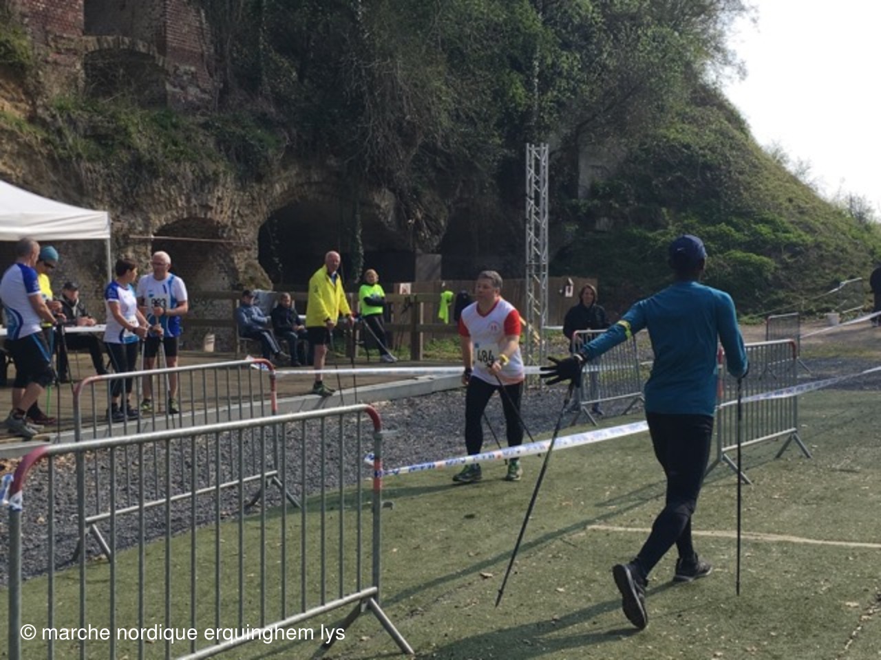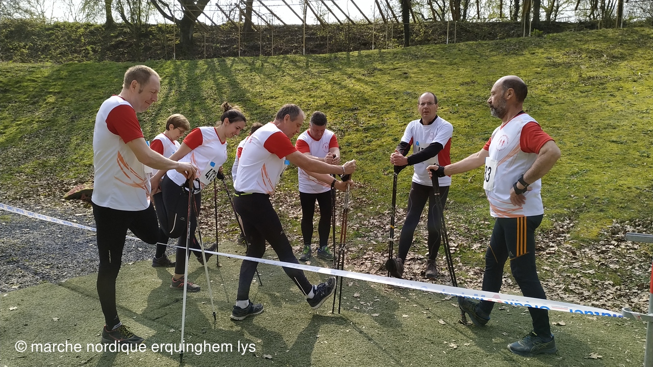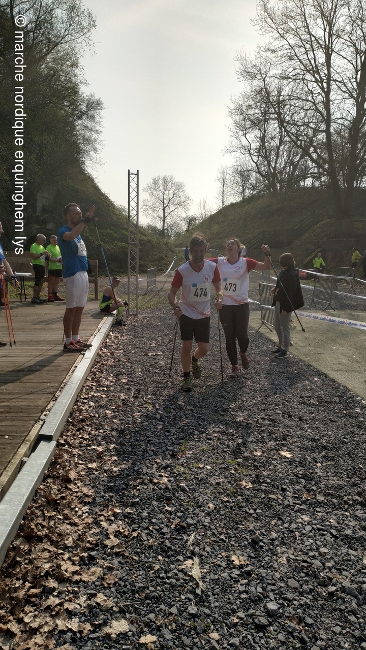 Première expérience d'une course relais en marche nordique par équipe au fort du Vert Galant à Wambrechies : 5 km en individuel pour 4 marcheurs puis 1.250 km par toute l'équipe pour terminer.Tous les participants ont apprécié tant l'ambiance que la course.