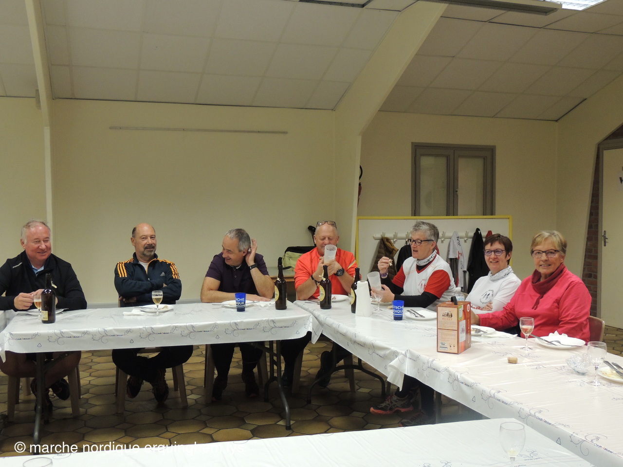 Après des échauffements en musique puis un parcours dans les environs, une séance de nordicfit a suivi, les étirements ont remis tout le monde en forme pour le pot de l'amitié et une sympathique auberge espagnole.